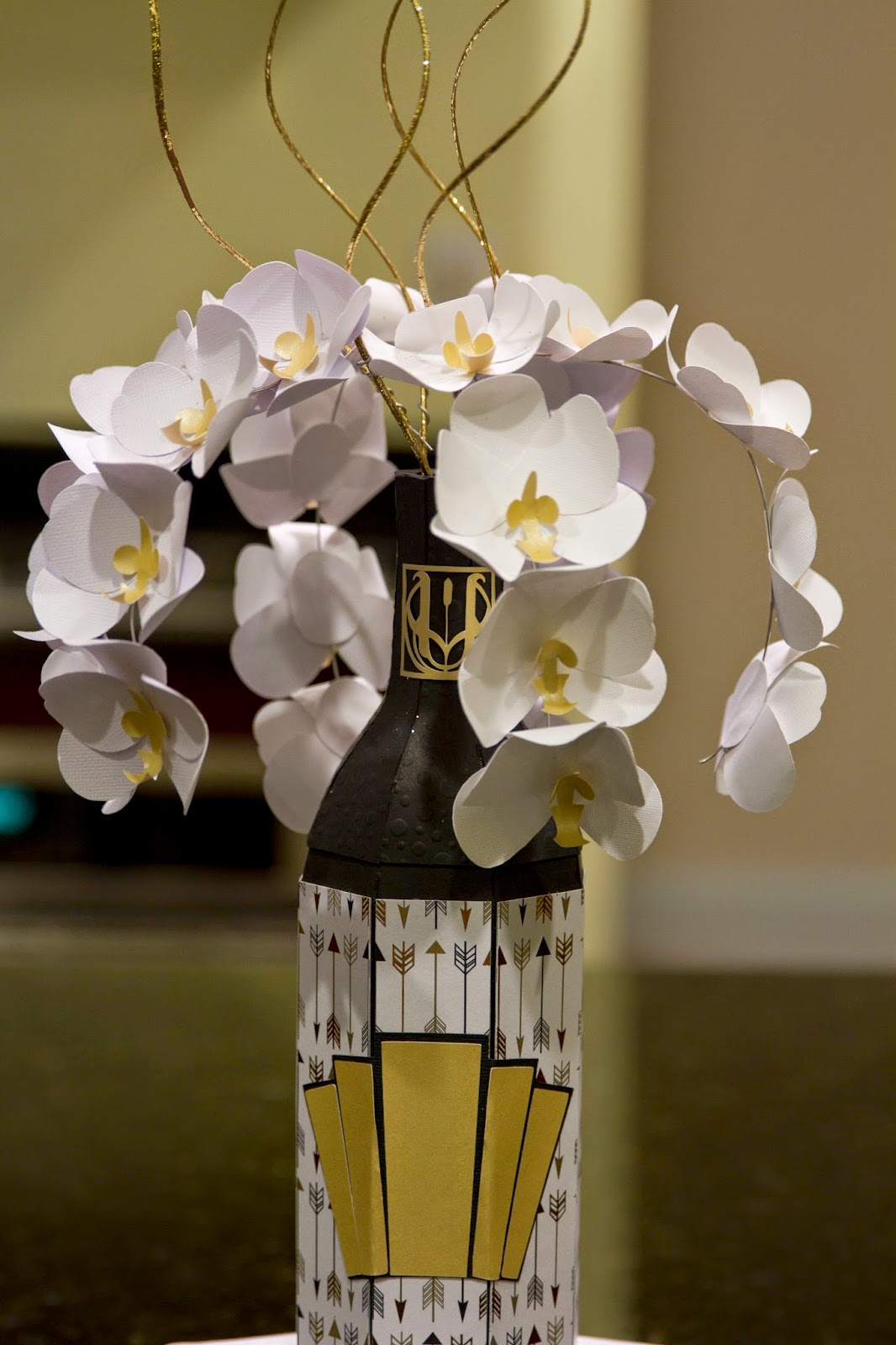 So I turned to SVG Cuts for the Champagne bottle and dice; and Craftsuprint for the orchid. I found these nice gold painted branches at Hobby Lobby. Here is what I put together: